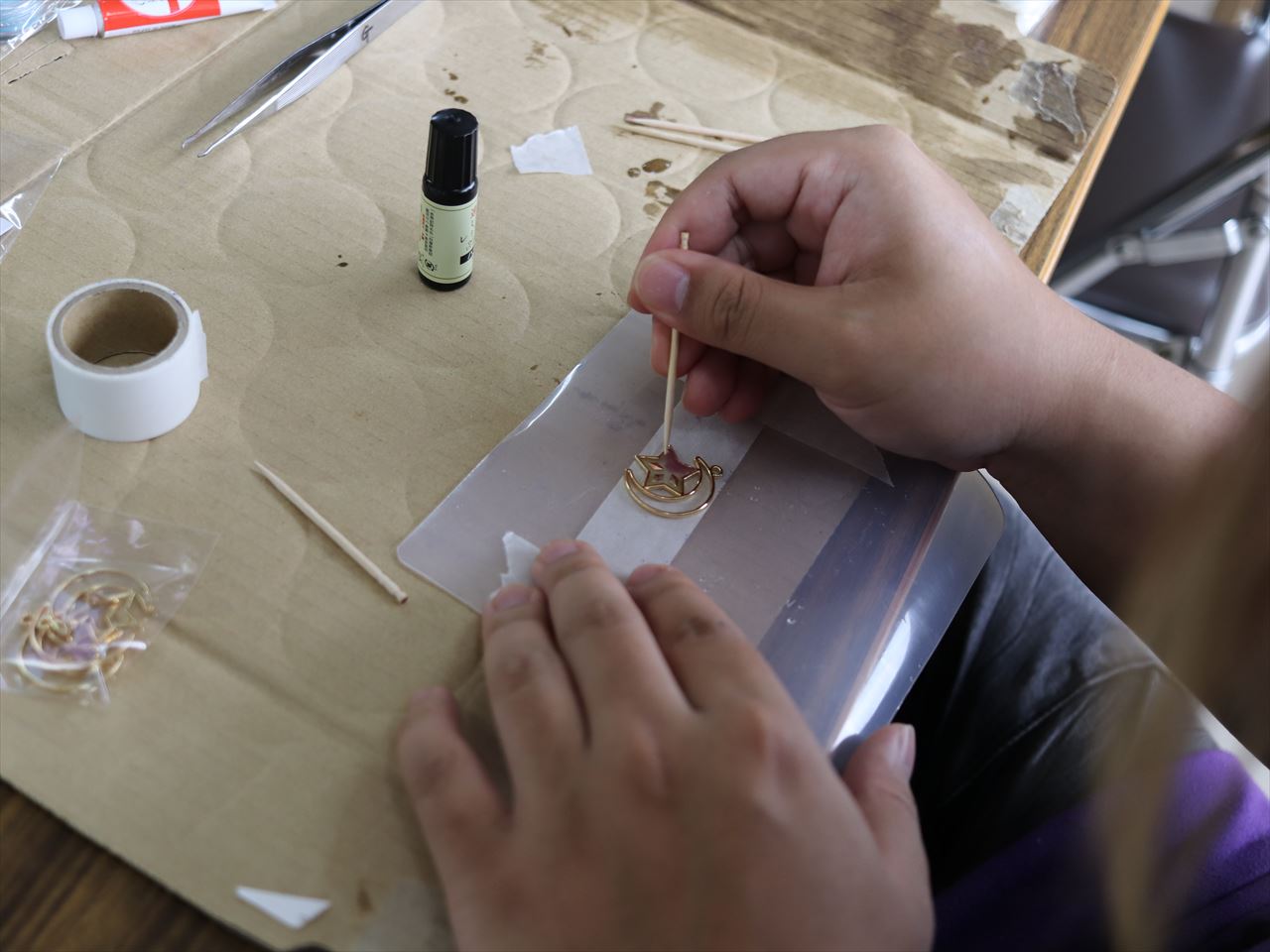フレームなどにレジン液を注入して、UV機器に入れて硬化させます。レジン液は、色々なカラーのレジン液があって、ラメや装飾品を入れて、最後に透明なレジン液で形を整えて硬化させます。完成品には、透明感のある艶やかな質感で、すごく綺麗です。 レジンストラップ製作模様 Tweet Tweet